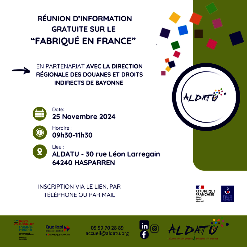 La Cellule de Conseil aux Entreprises de la Direction Régionale des Douanes et Droits Indirects de Bayonne, vient à la rencontre des chefs d'entreprise du Pays de HASPARREN le lundi 25 novembre 2024.