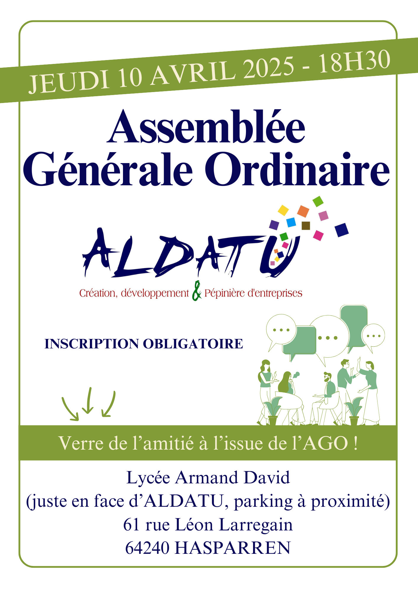 --> Inscription obligatoire par téléphone au 05 59 70 28 89 ou par mail à accueil@aldatu.org