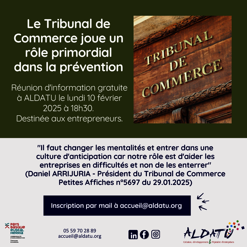 Une permanence du Tribunal de Commerce sera désormais mise en place dans nos locaux à HASPARREN pour accompagner au mieux les entrepreneurs dans leurs démarches !