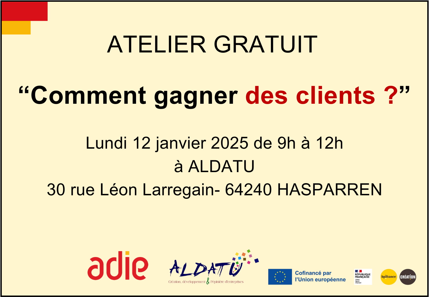 Il sera question du comment attirer de la clientèle en retraçant les principes de base de l’action commerciale, de la prospection et de la relation commerciale. Cet atelier sera animé par l'ADIE.